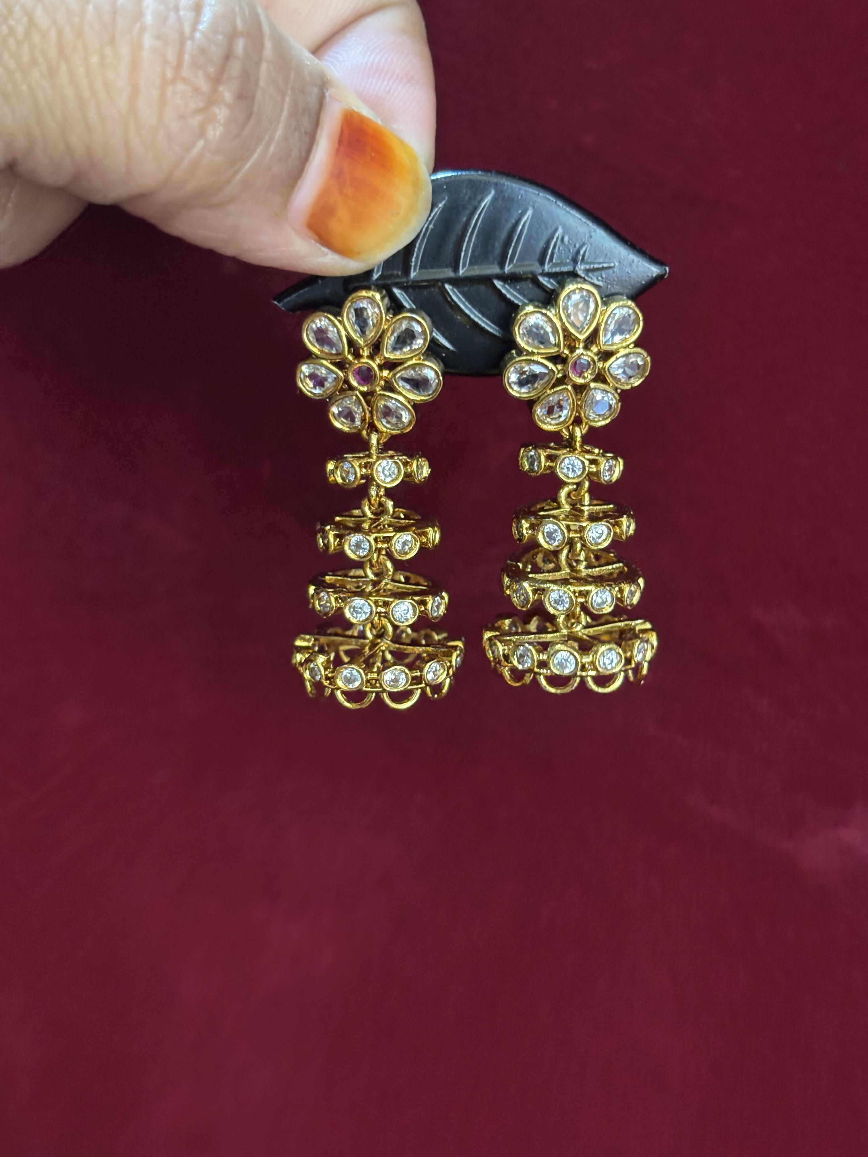 Antique Shade Flower Shape Ear Hangings, Set of 1 Pair