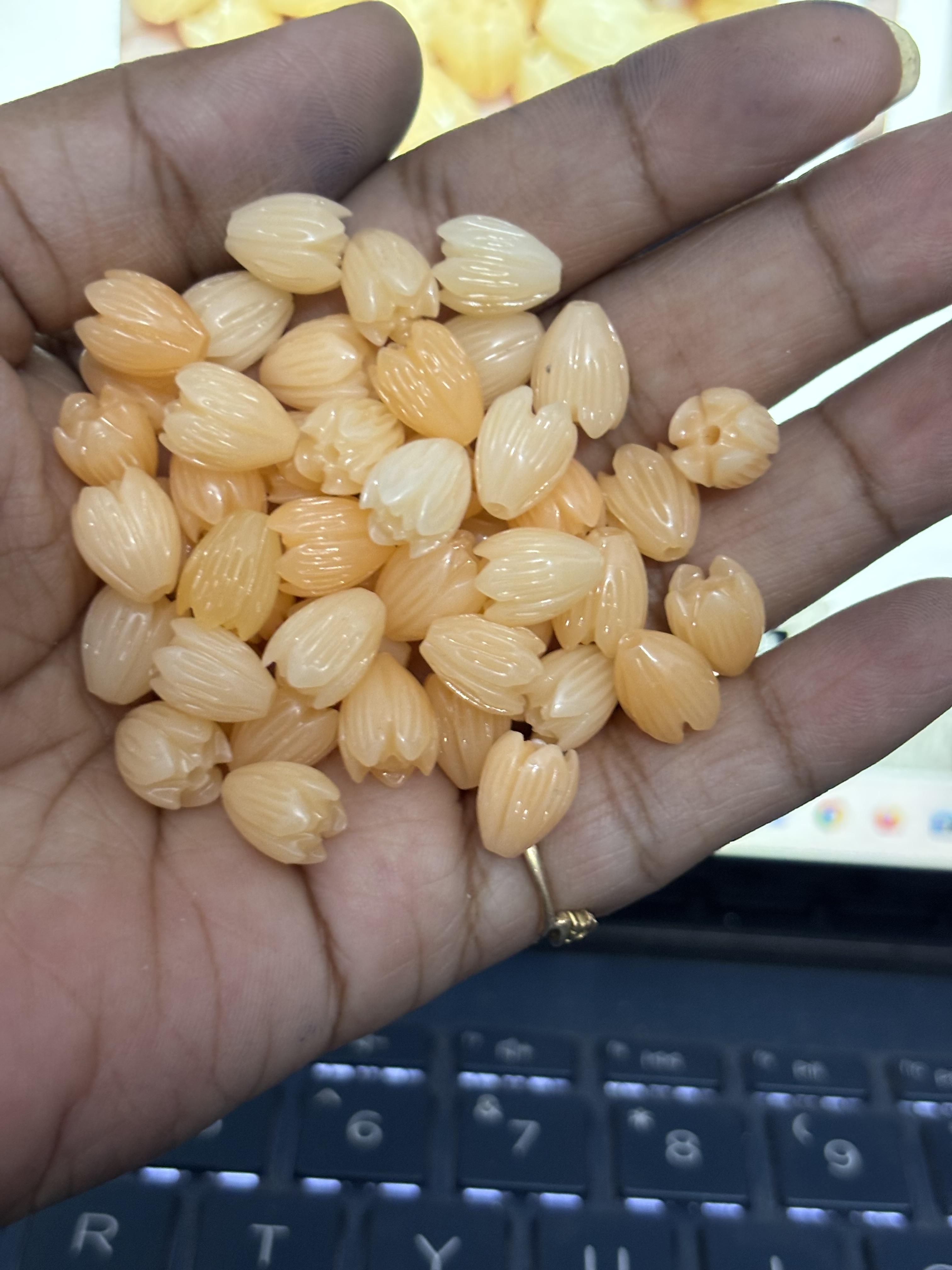 Coral Replica Synthetic Beads, Tulip Shape, 10x8mm Light Orange, Pack Of 10 Pcs
