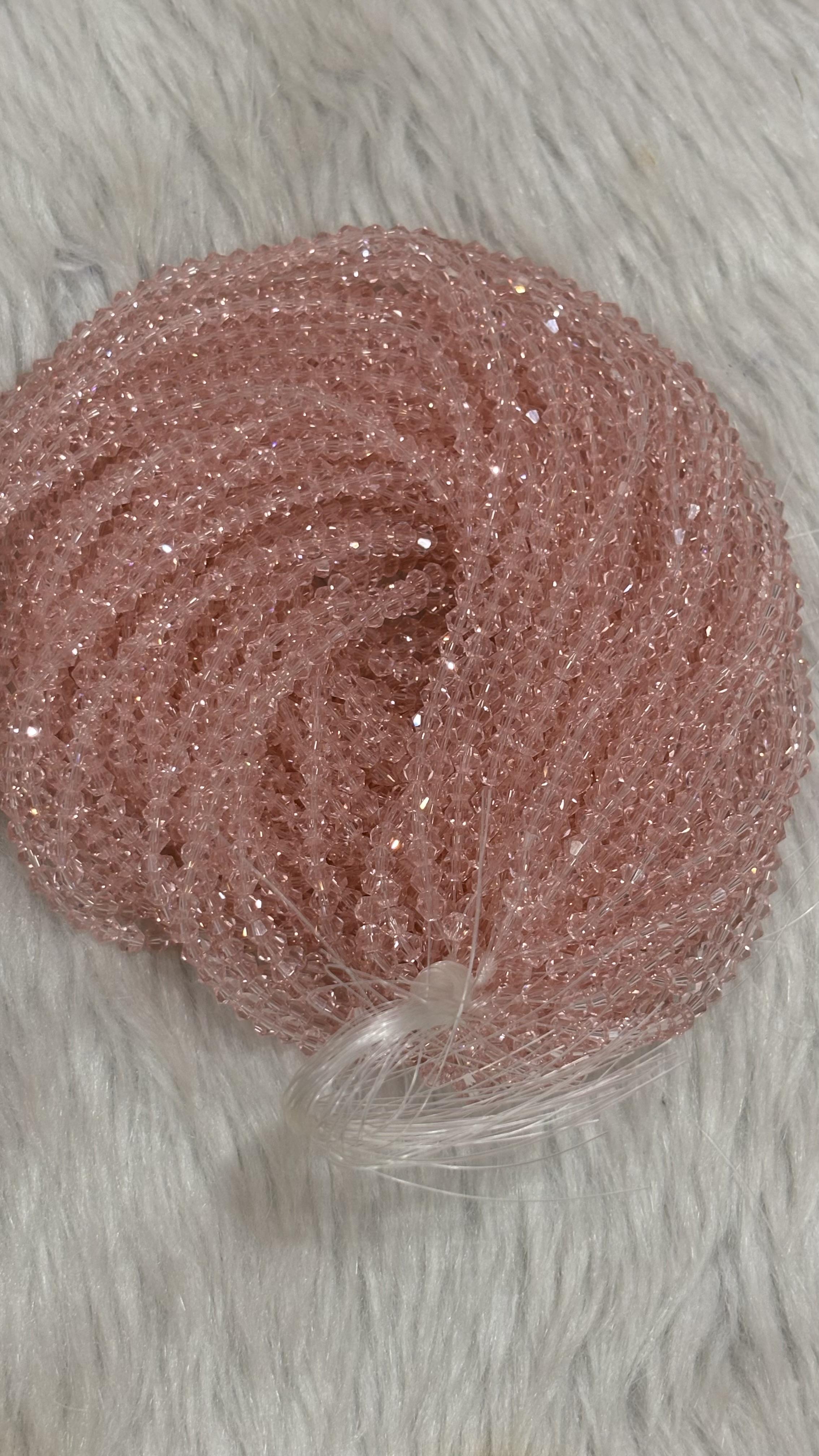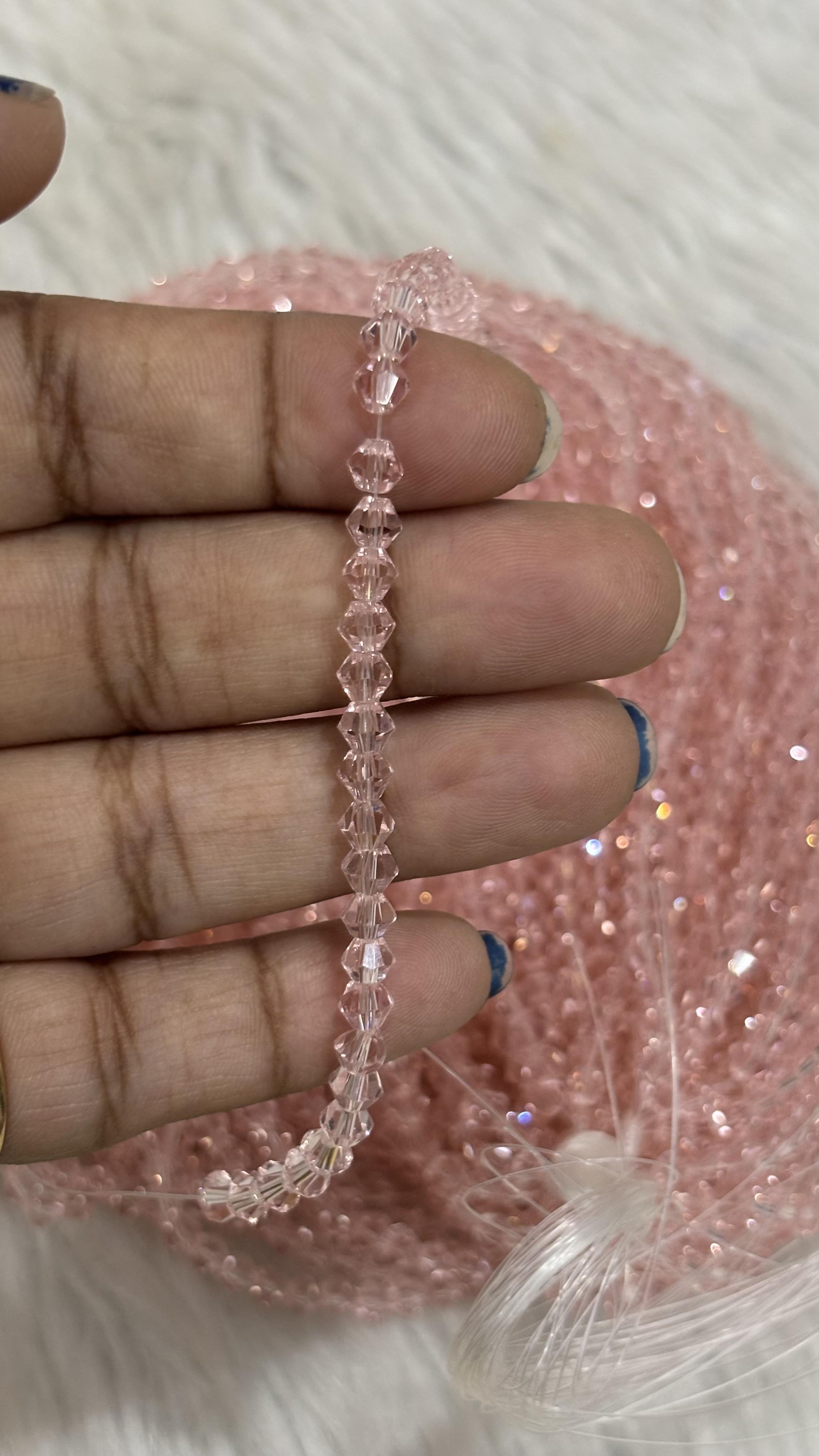 4mm Crystal Beads, Two Side Cone Shape, colours Available, you will get a single line with approx 70beads (10-11 inches long),by default Baby Pink colour will be picked,please select colour.