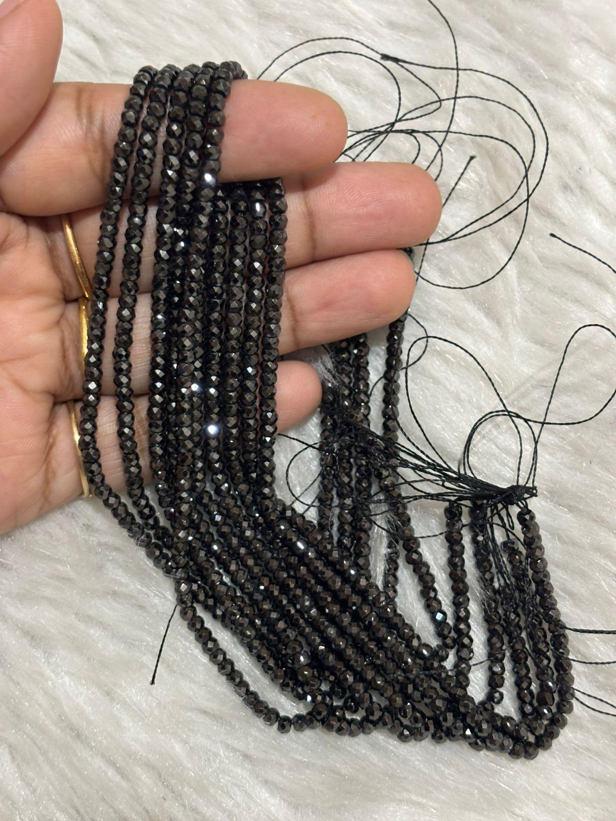 3mm, CZ Beads , Black colour, sold by 1 string, Picture is for representation, you will get a single line with approx 160 beads ( 14inches long)