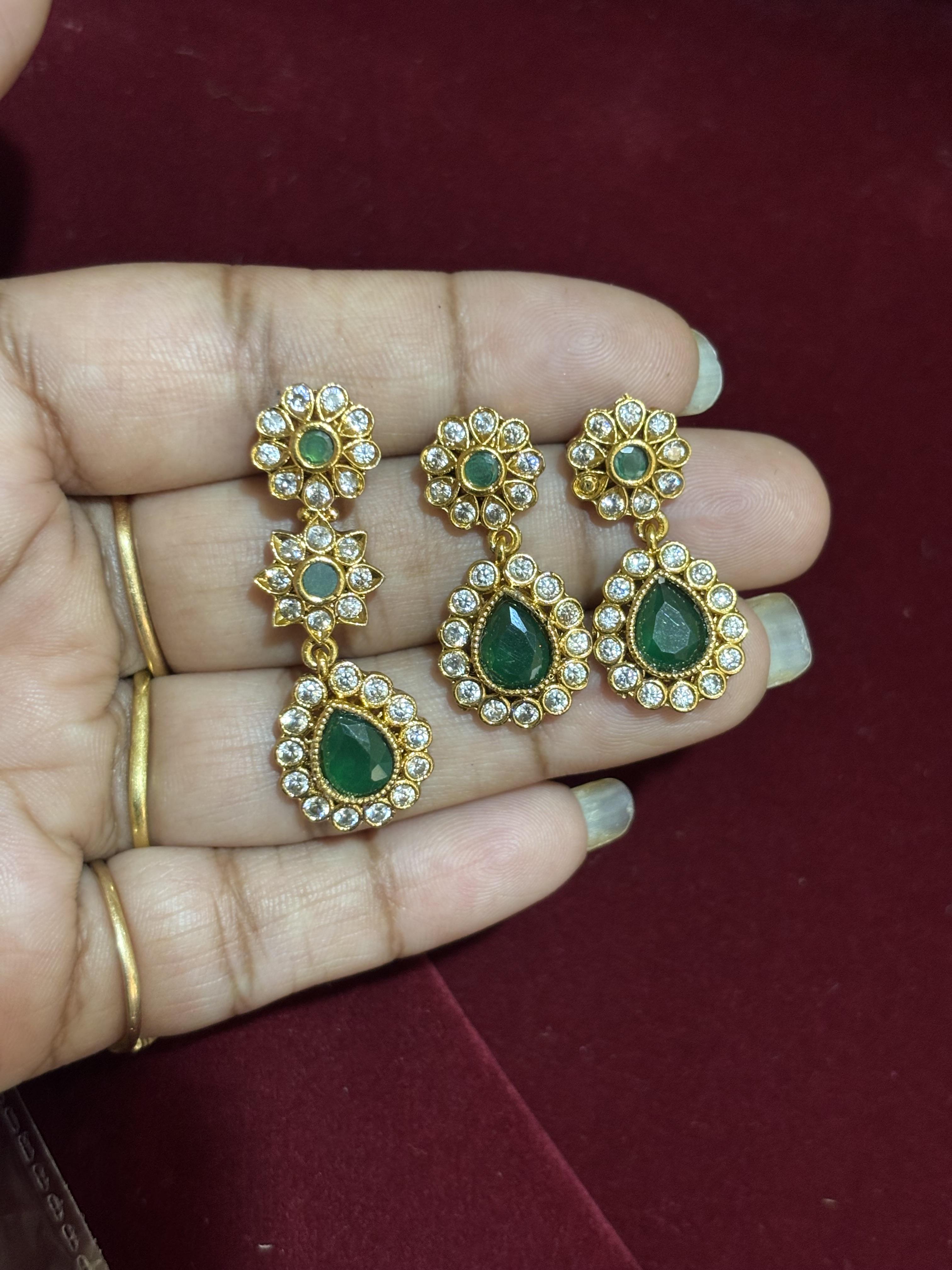 Gold Finish Pendant with 7 holes with Earrings , sold by 1 pc, Colours Available, by default Green Colour will be picked , please select size.