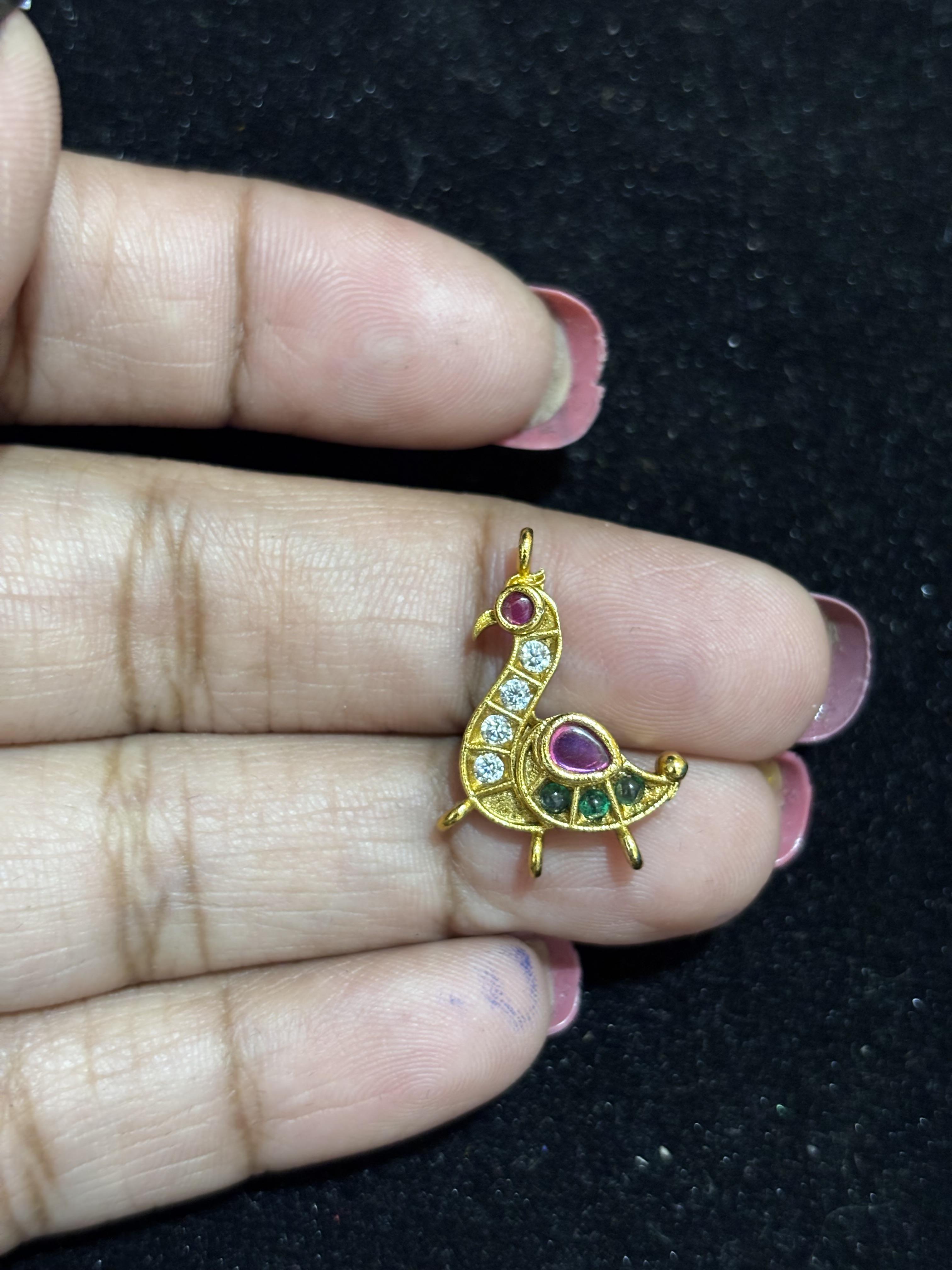 Gold Finish Peocock model Kundhan Pendant ( Random colour in this model you will receive)