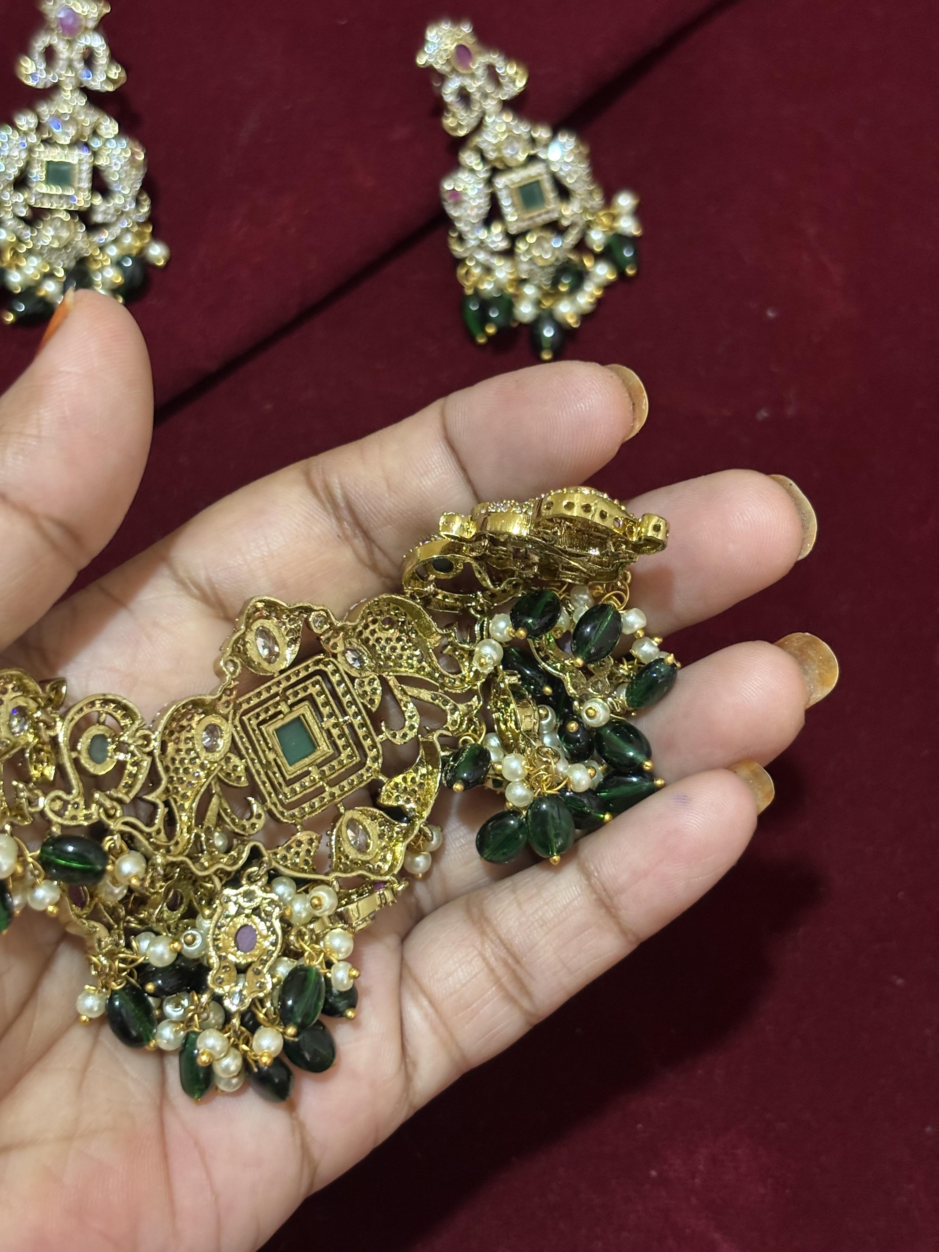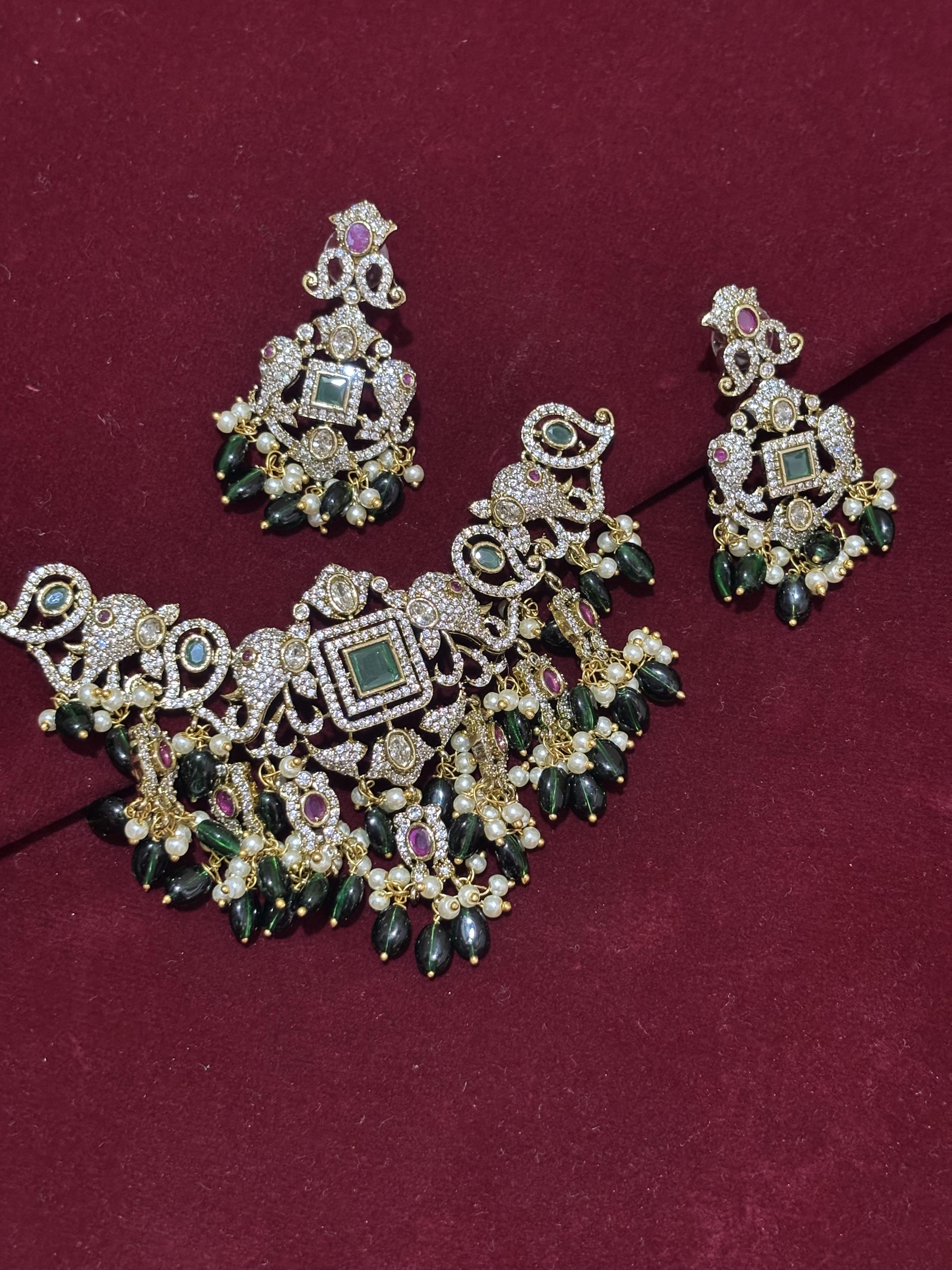 Victorian Heavy Pendants with earrings, By Default Green Colour will be picked, please select colours