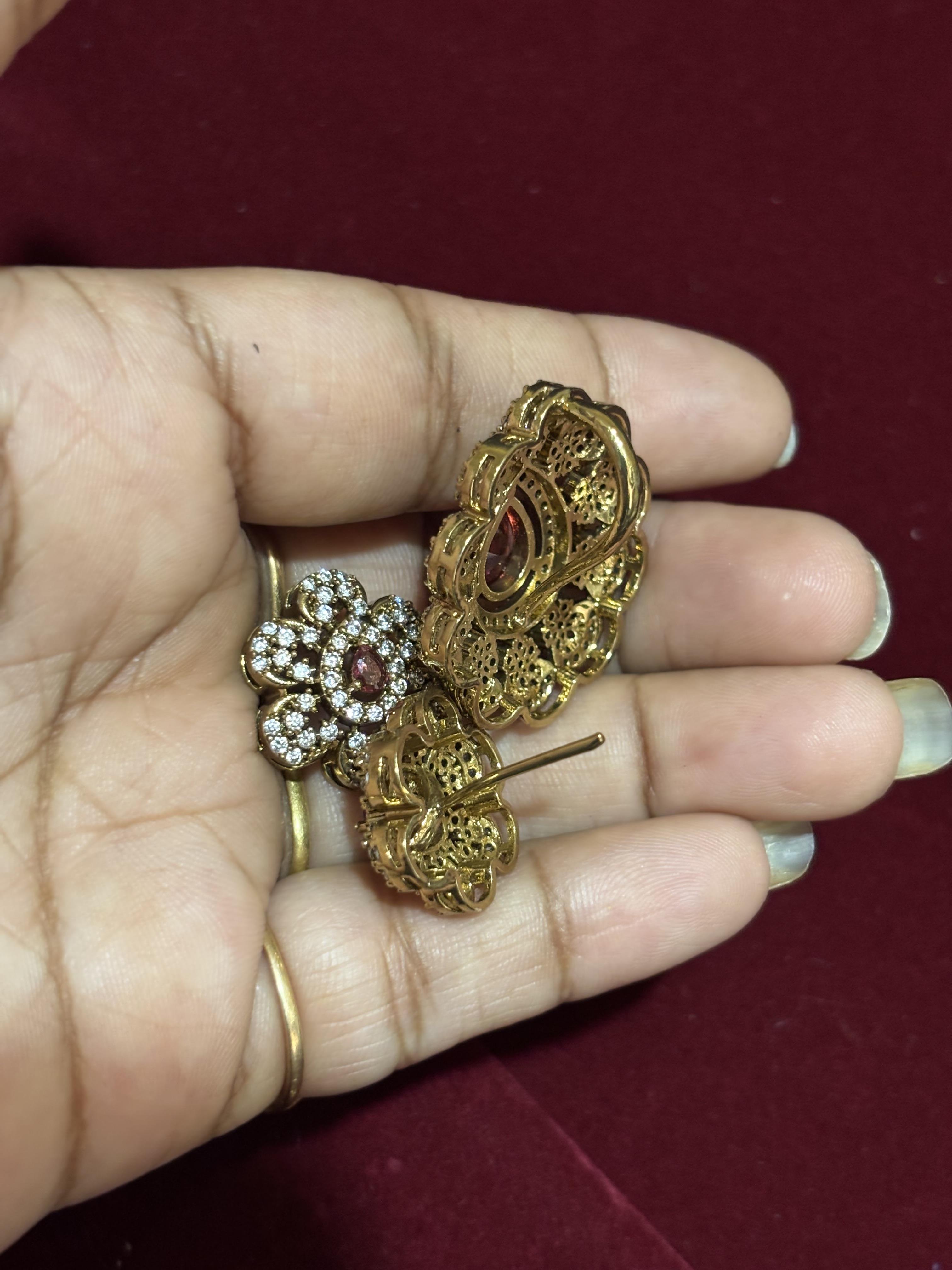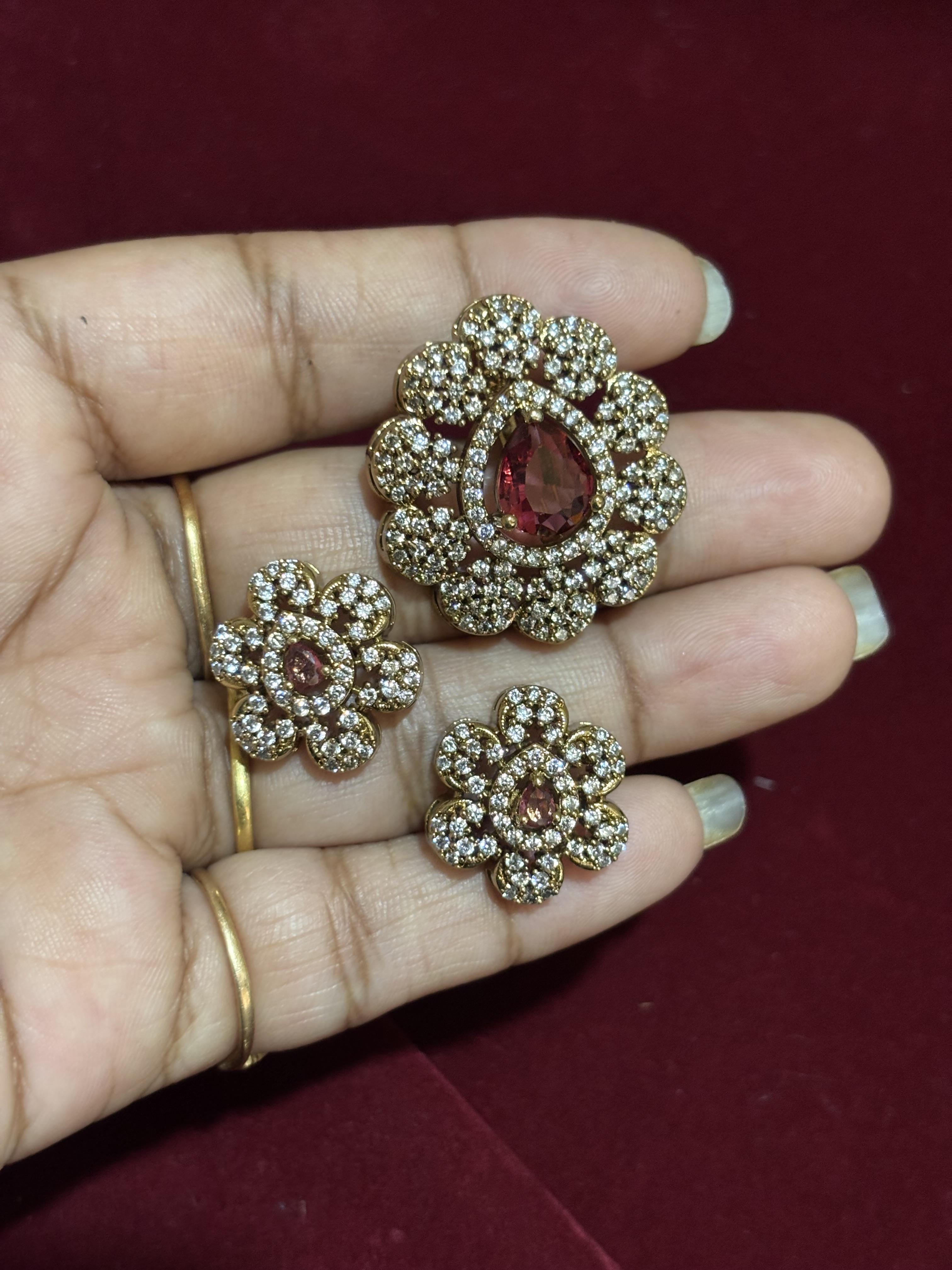 Victorian Mehandi finish Pendant With Stud Earrings (Colours Available)