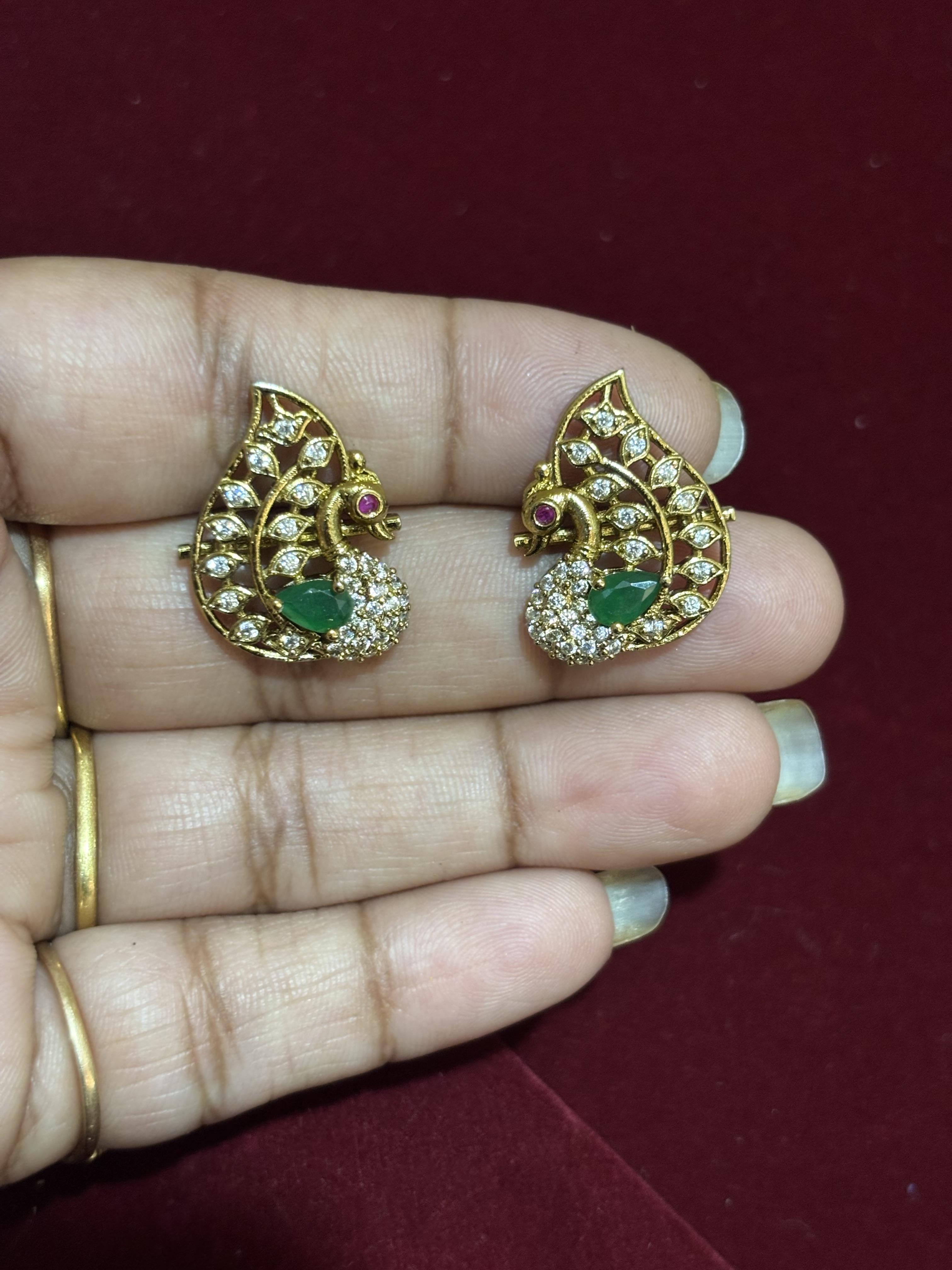 Victorian Peacock Side Pendants ,set of 1 pair, colours available, By Default Green Colour will be picked, please select colour.