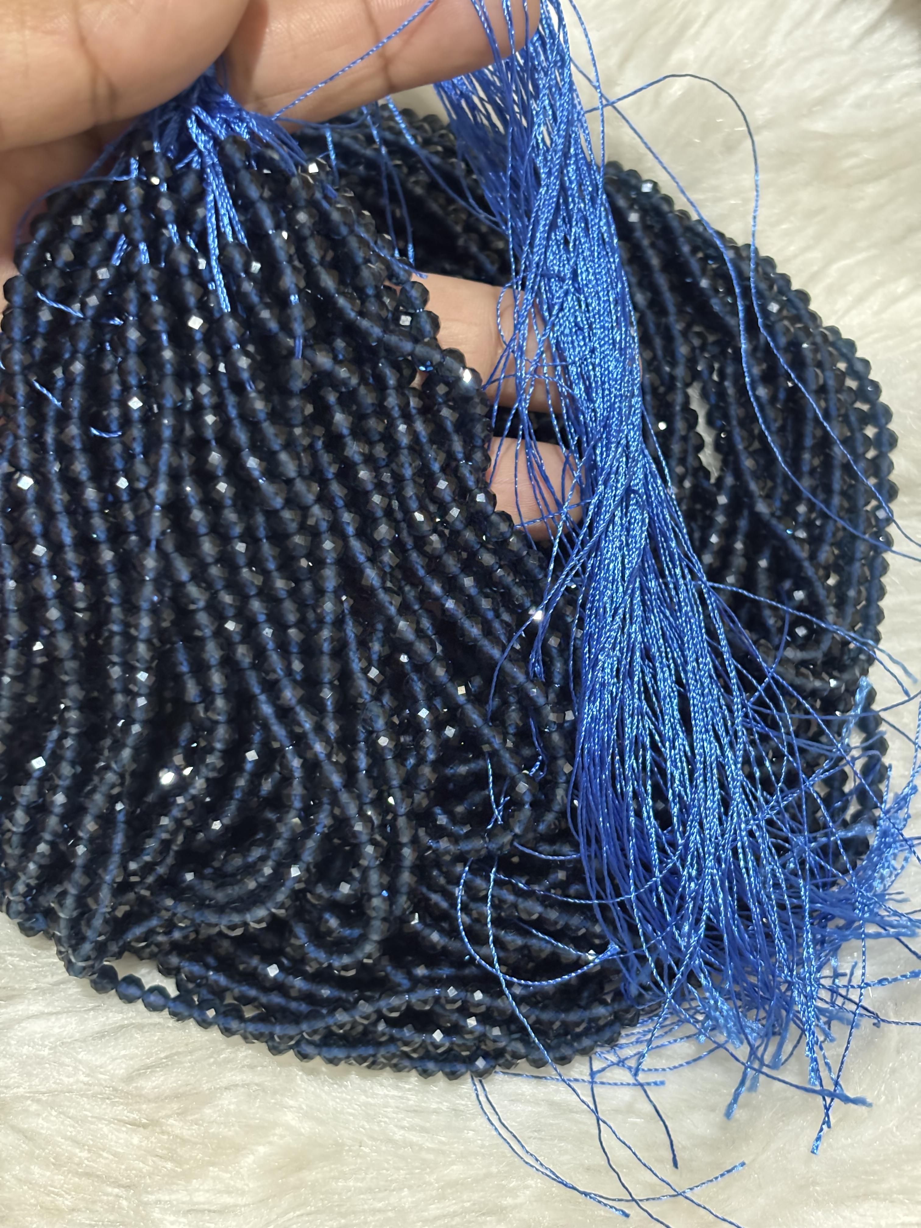 4mm Hydro (Glass) Beads, Round, Blue Sold by 1 string, Picture is for representation, you will get a single line with approx 98 beads (14 inches long)