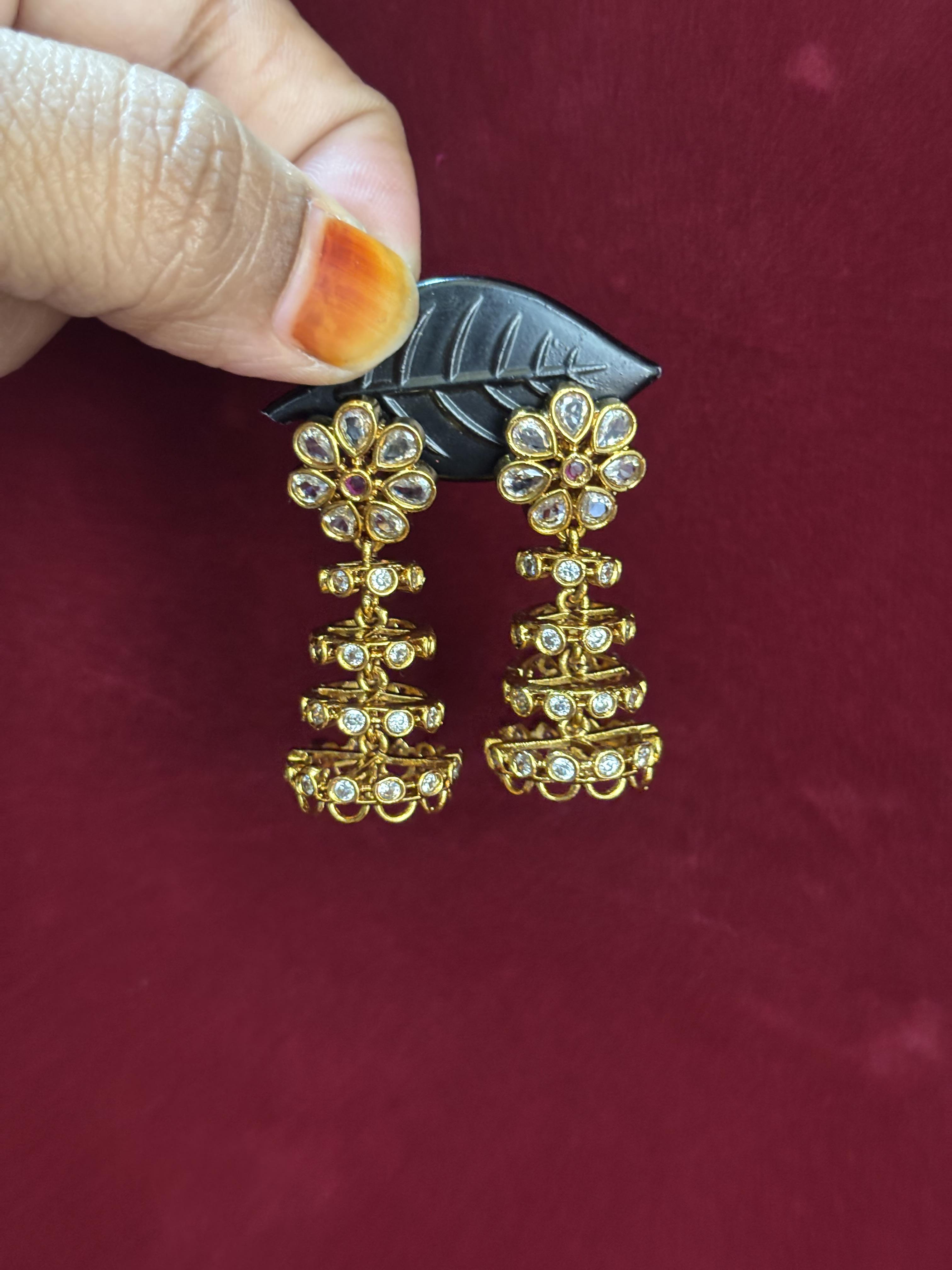 Antique Shade Flower Shape Ear Hangings, Set of 1 Pair