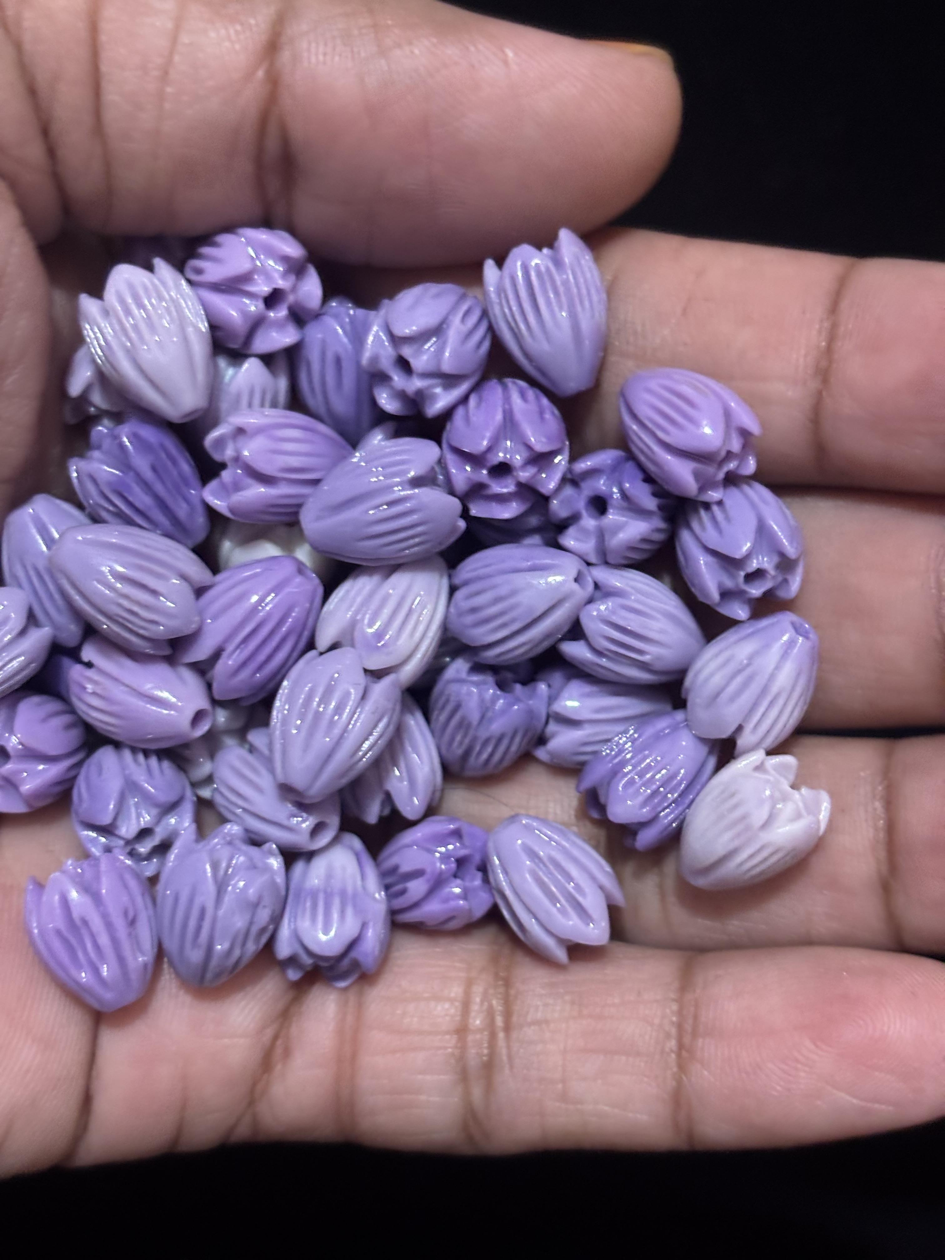 Coral Replica Synthetic Beads, Tulip Shape, 10x8mm Lavender, Pack Of 10 Pcs