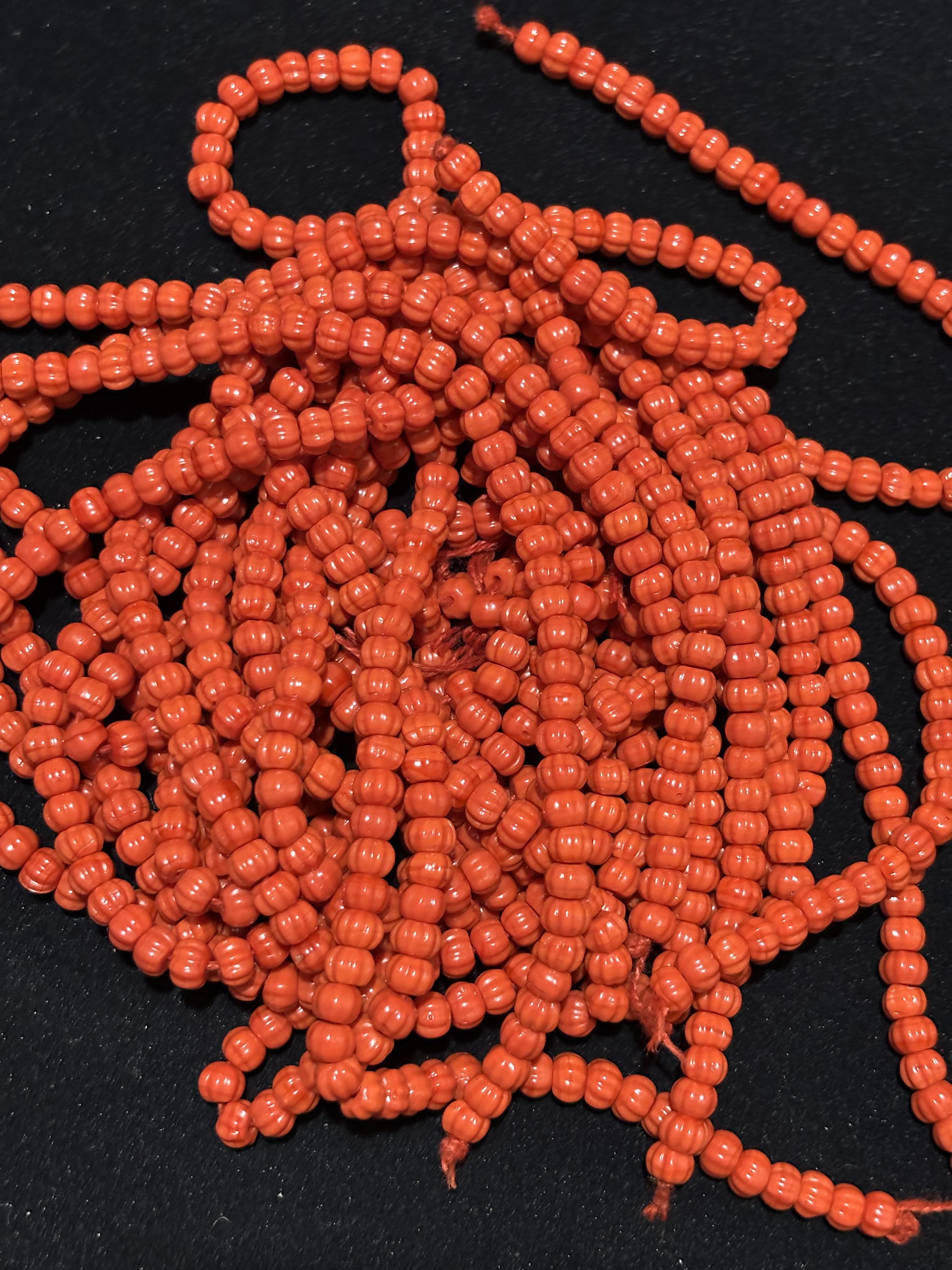 Corals pumpkins , 5 X 6 mm size, sold by 1 line, Approx 75-80 beads in 1 line.