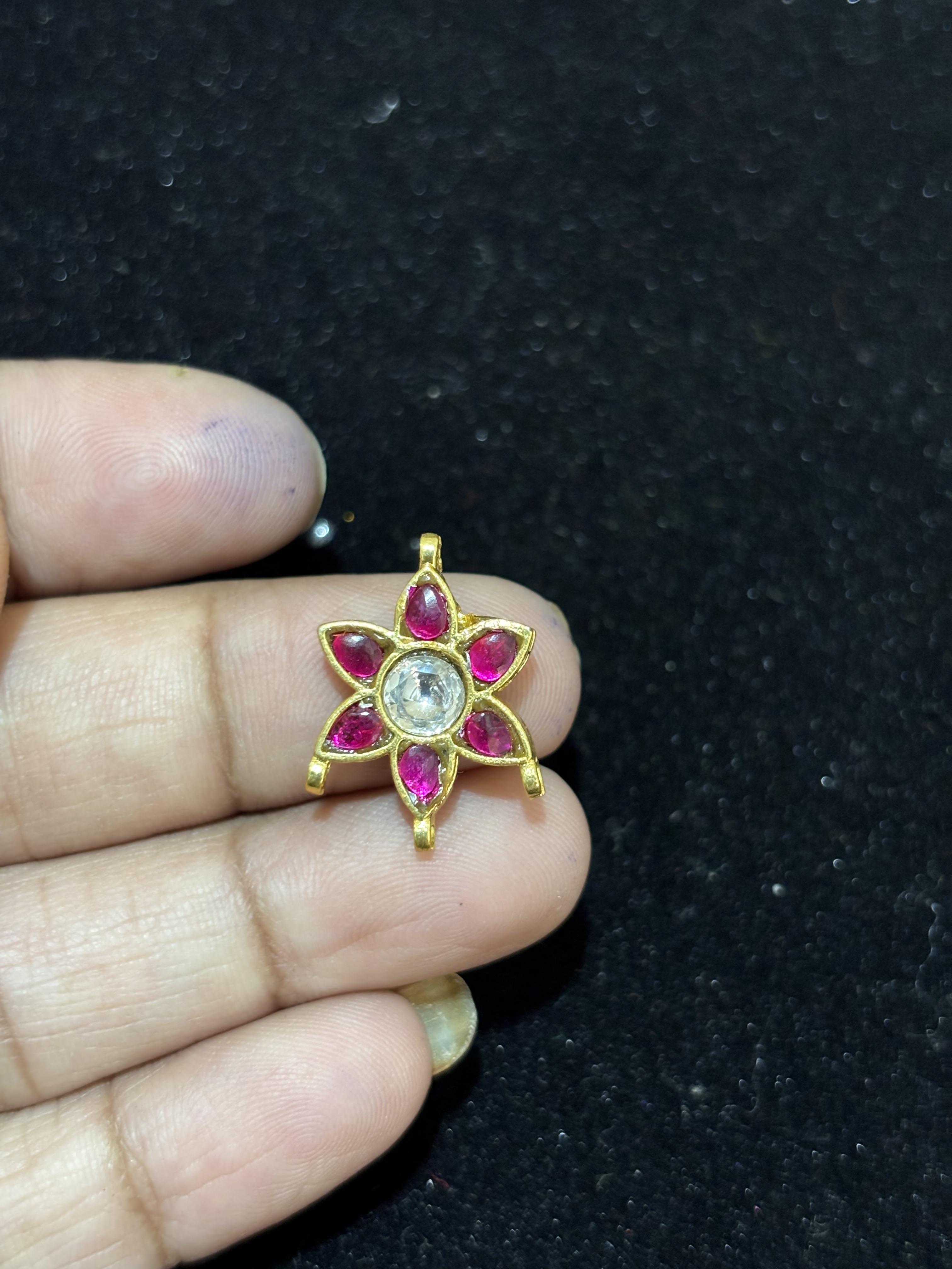 7 stone Multi Colour Flower Jadav Pendant, By default Pink and White Combination will be pick please select colour,