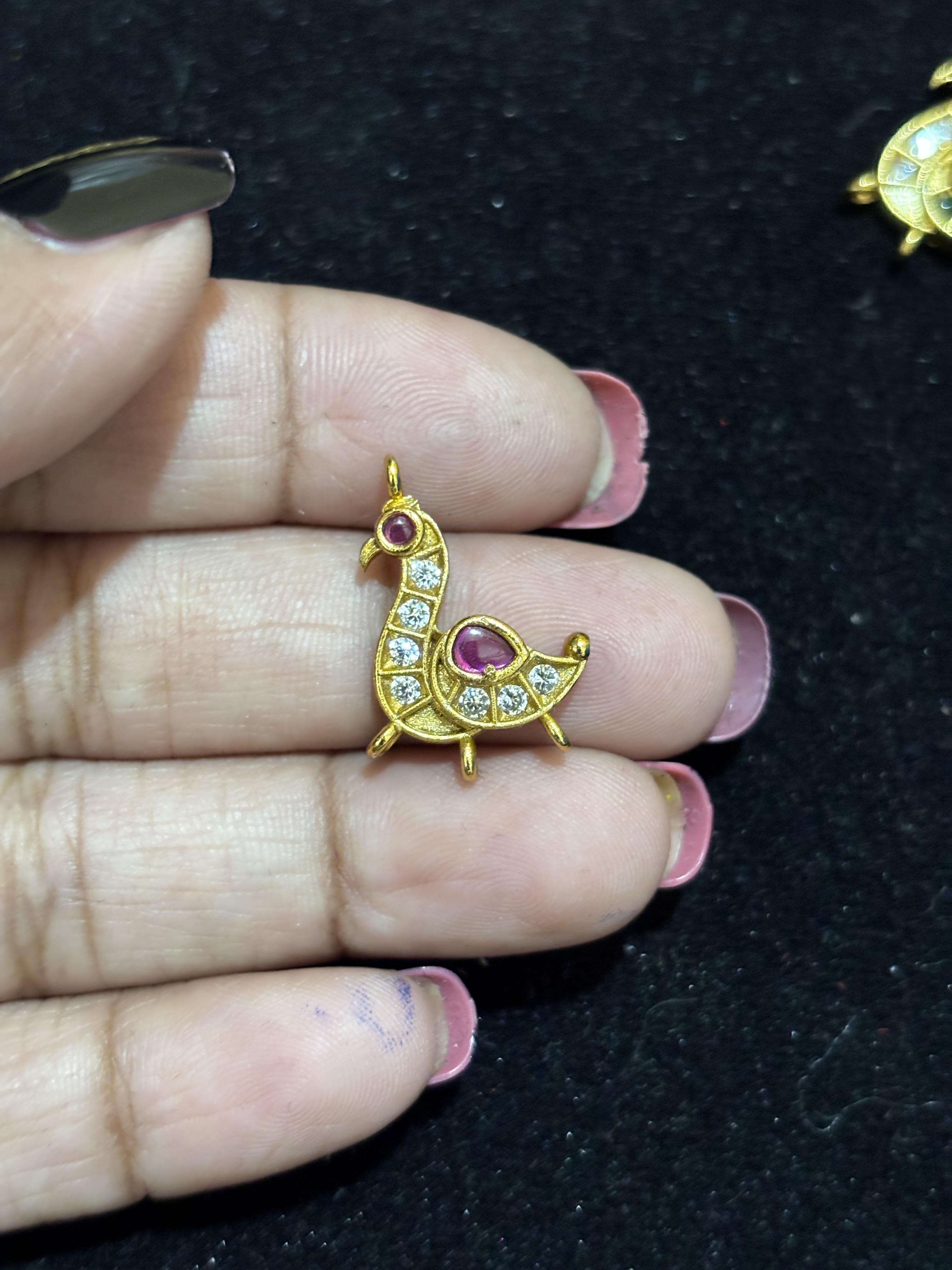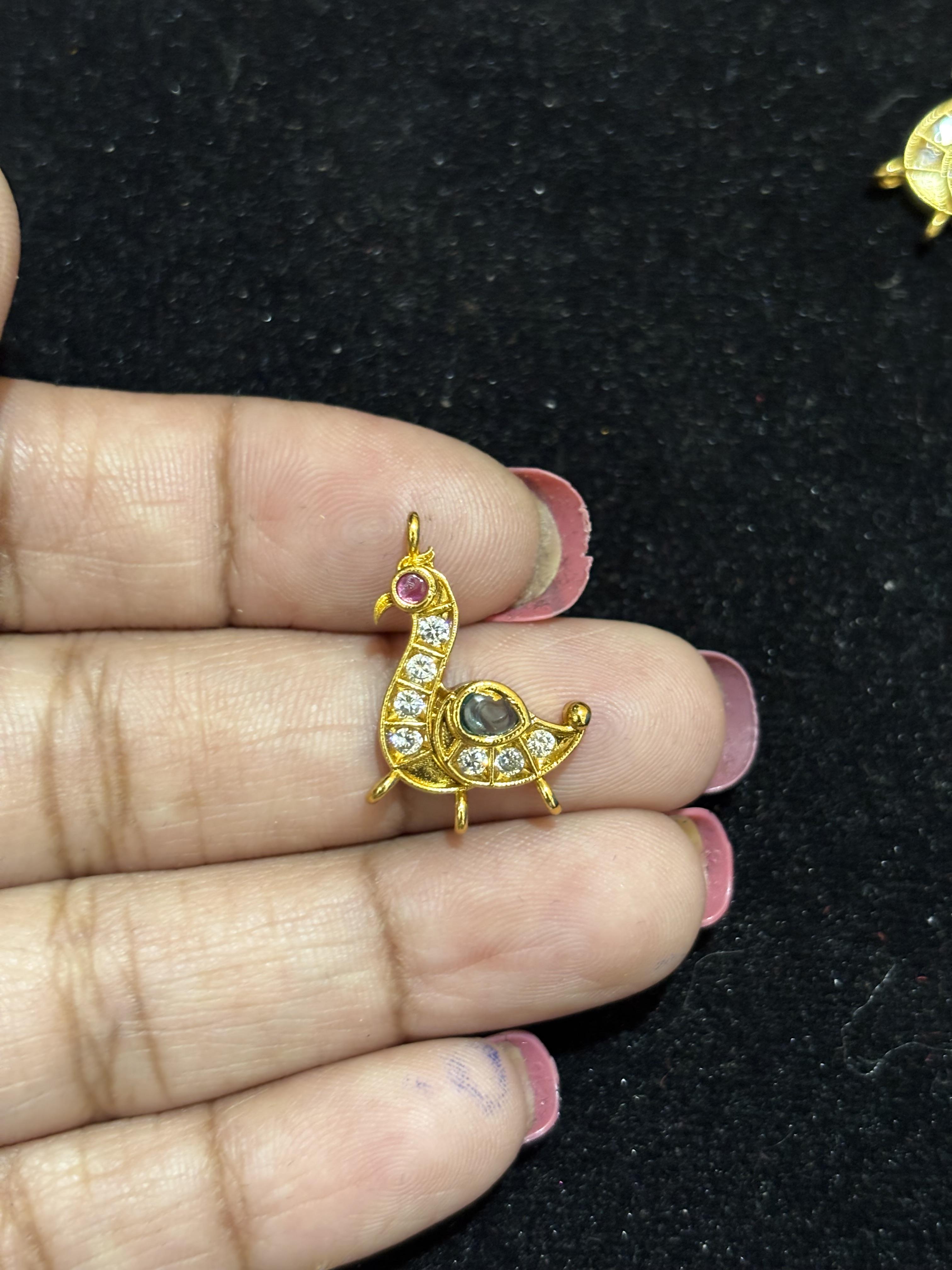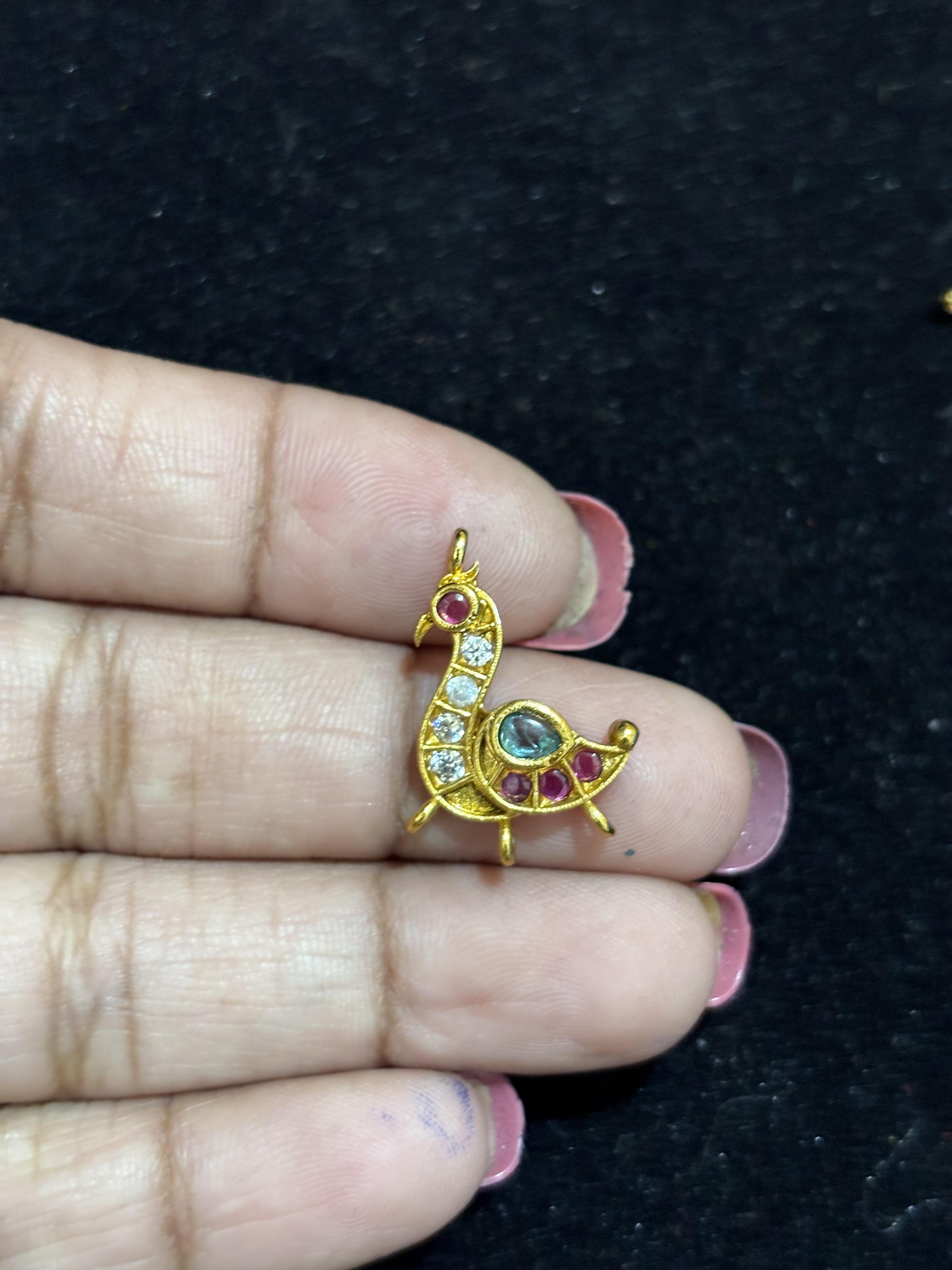 Gold Finish Peocock model Kundhan Pendant ( Random colour in this model you will receive)