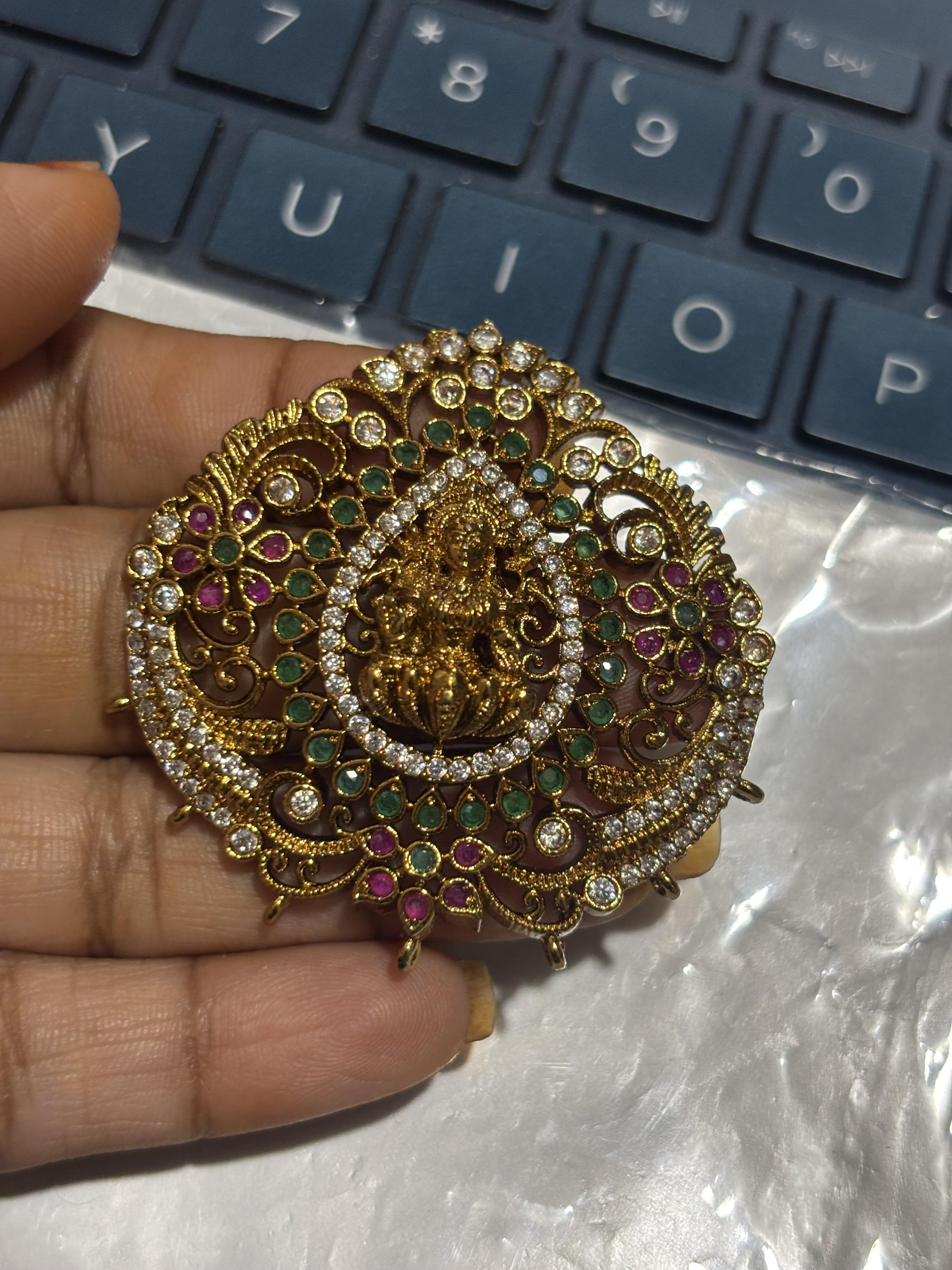 Antique Finish Lakshmi Devi Pendant with D Hook backside
