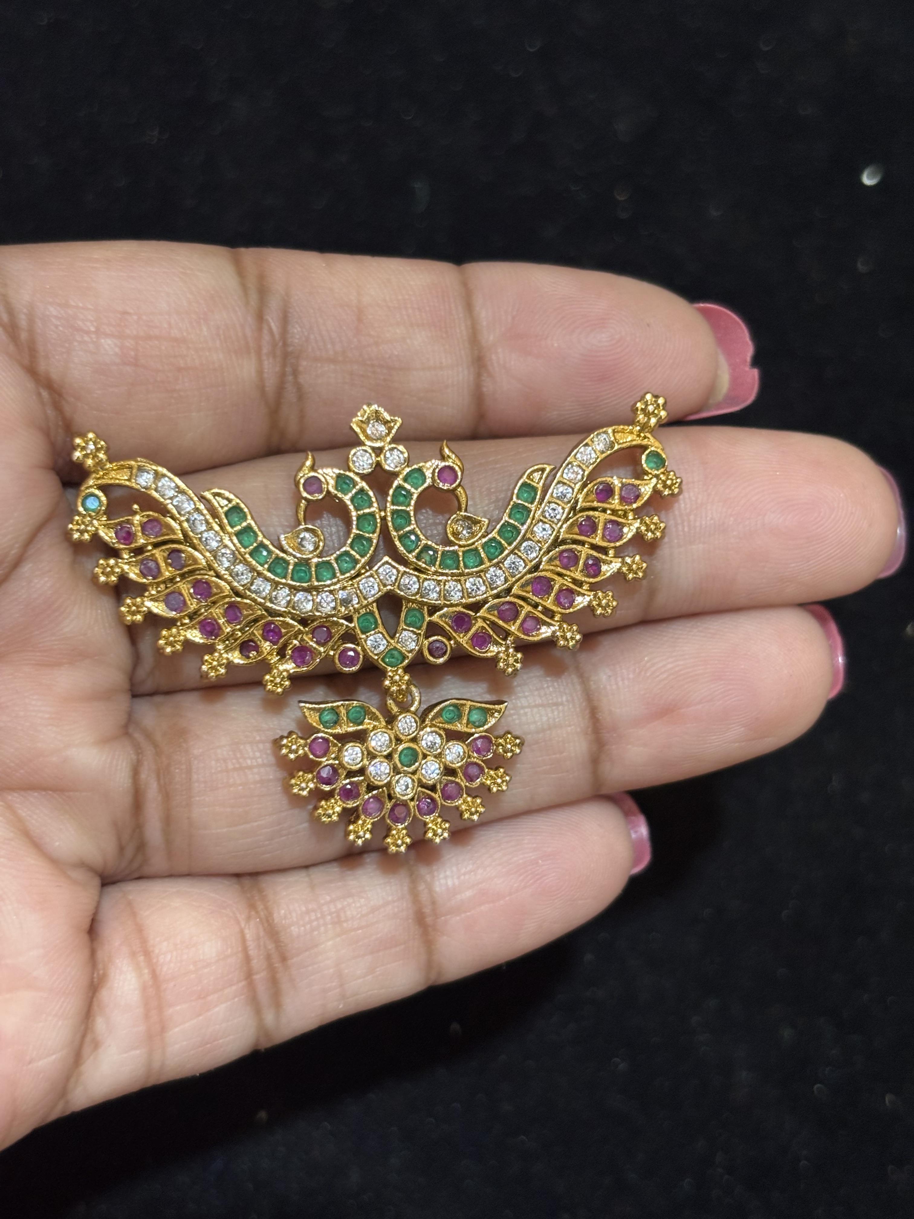 Matt Finish Multi colour Peocock Pendant without Earrings
