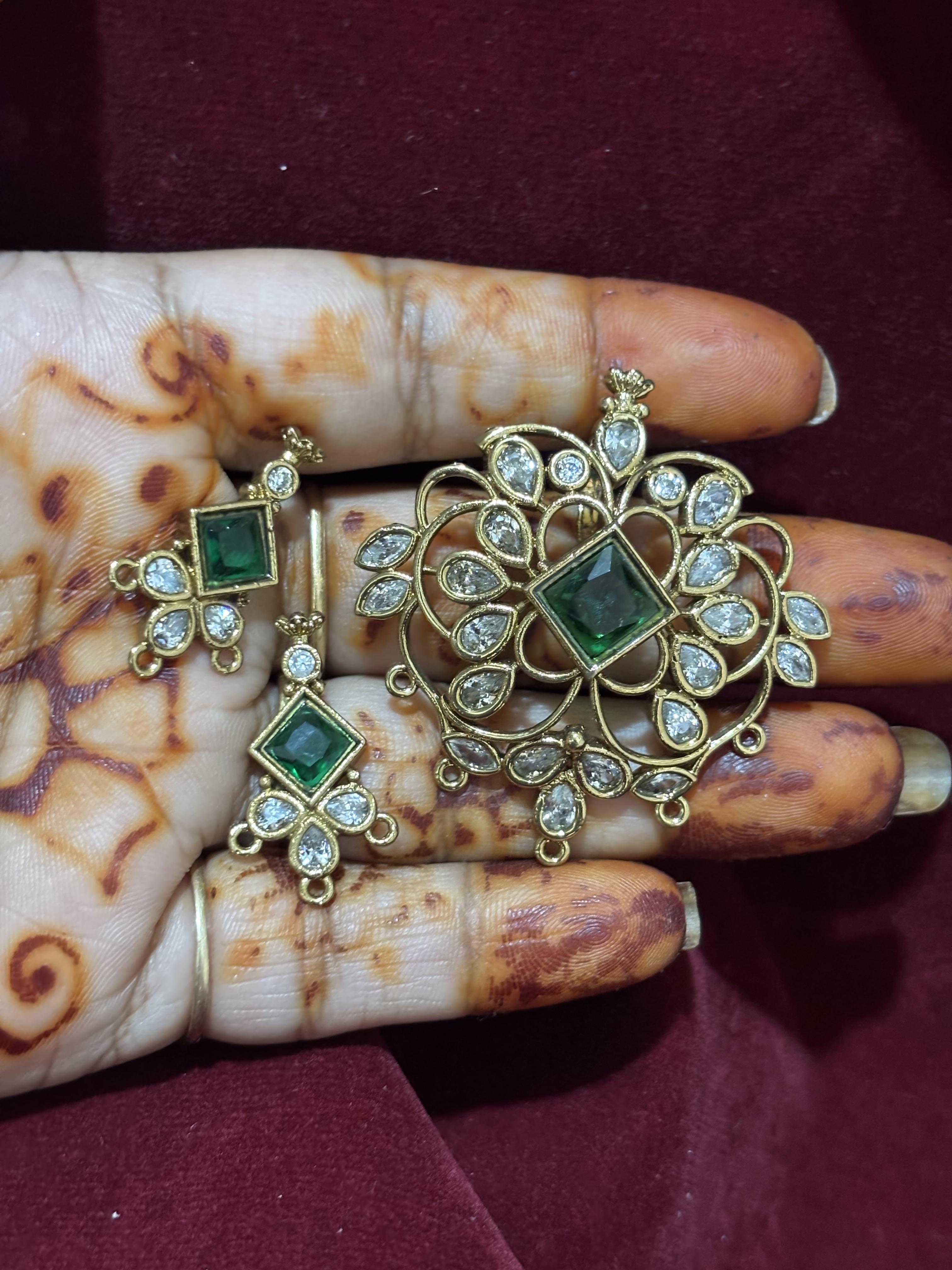 Mehandhi Finish Pendant with Earrings, sold by 1 pc, Colours Available
