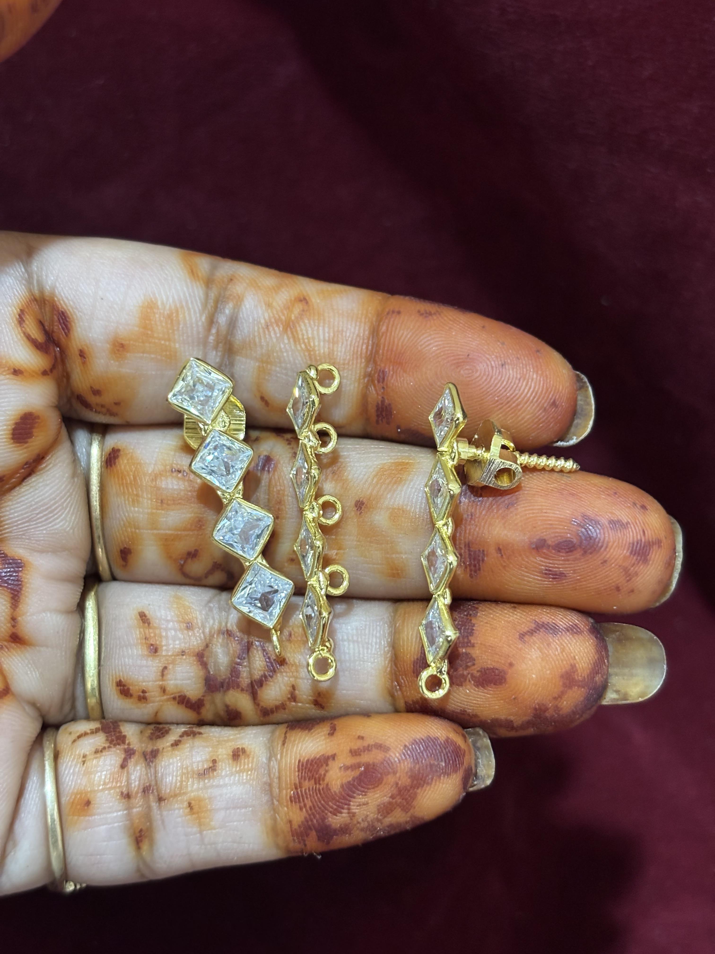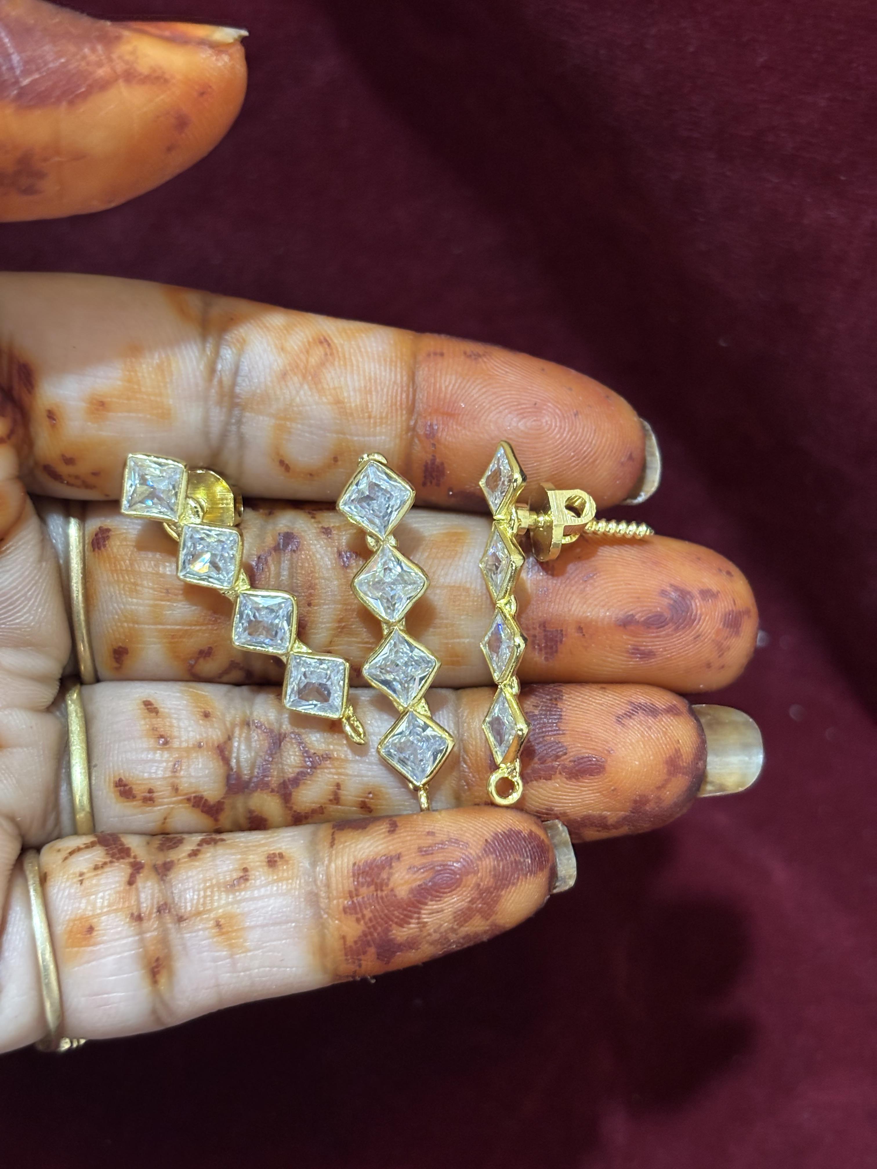 Polki Stone Diamond Shape Pendant with Screw Back Earrings , Set of 1 pair , Colours Available, by default White colour will be picked, please select colour.