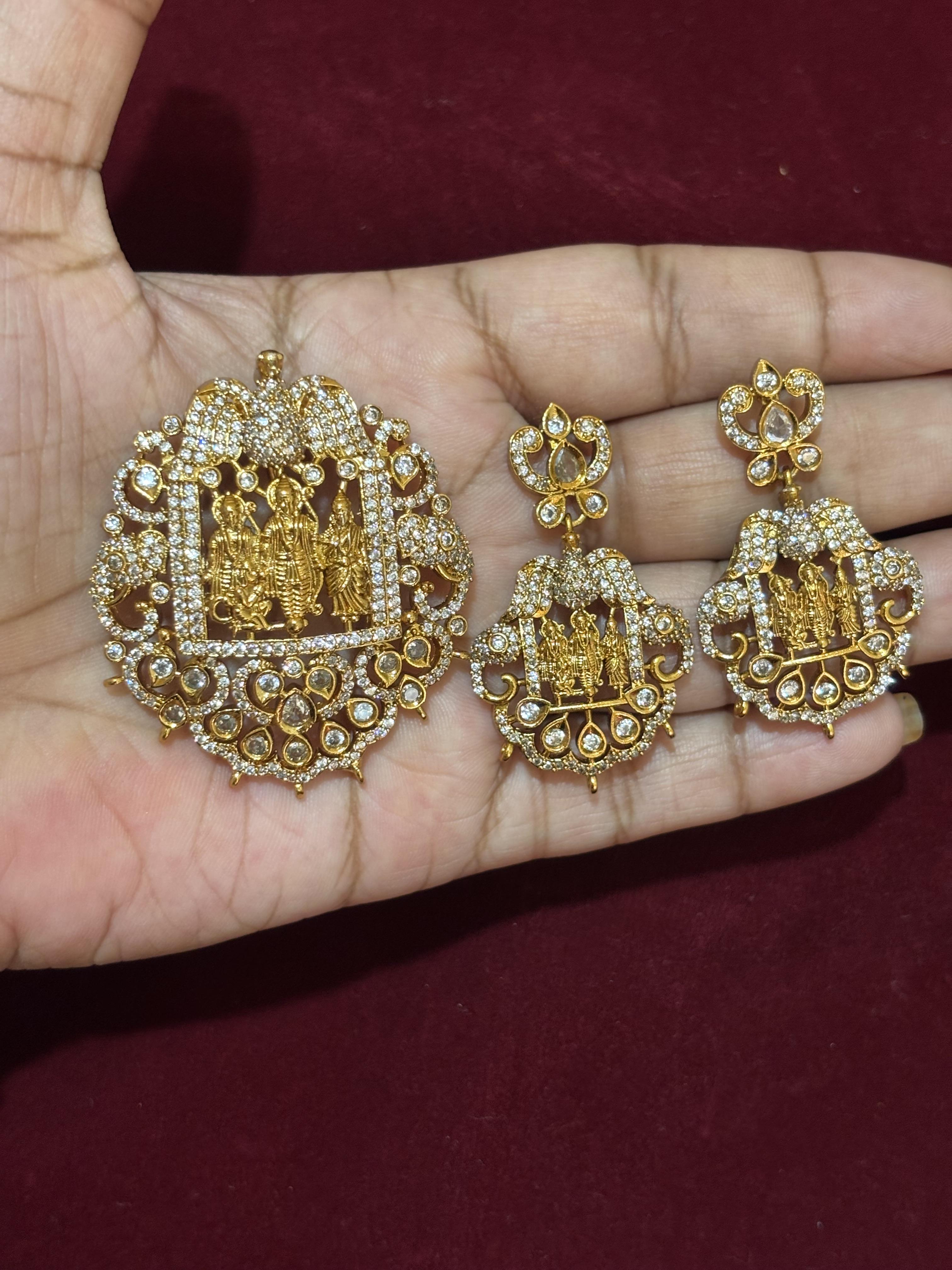Ram parivar Antique Pendant with peacock ear rings 2"x2" inch
