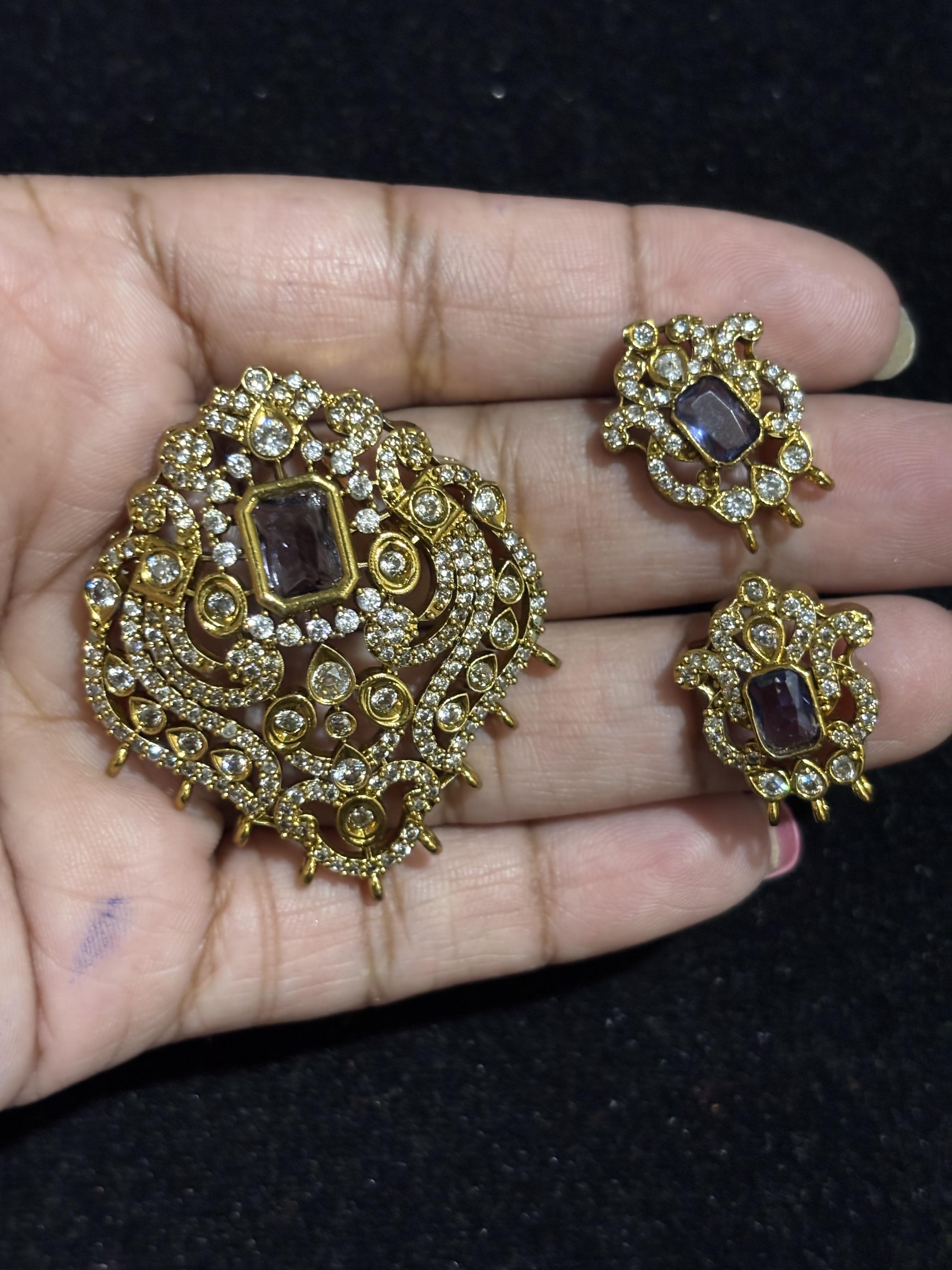 Victorian Mehandi finish Pendant With Stud Earrings (Colours Available),by default green colour will be picked,please select colour