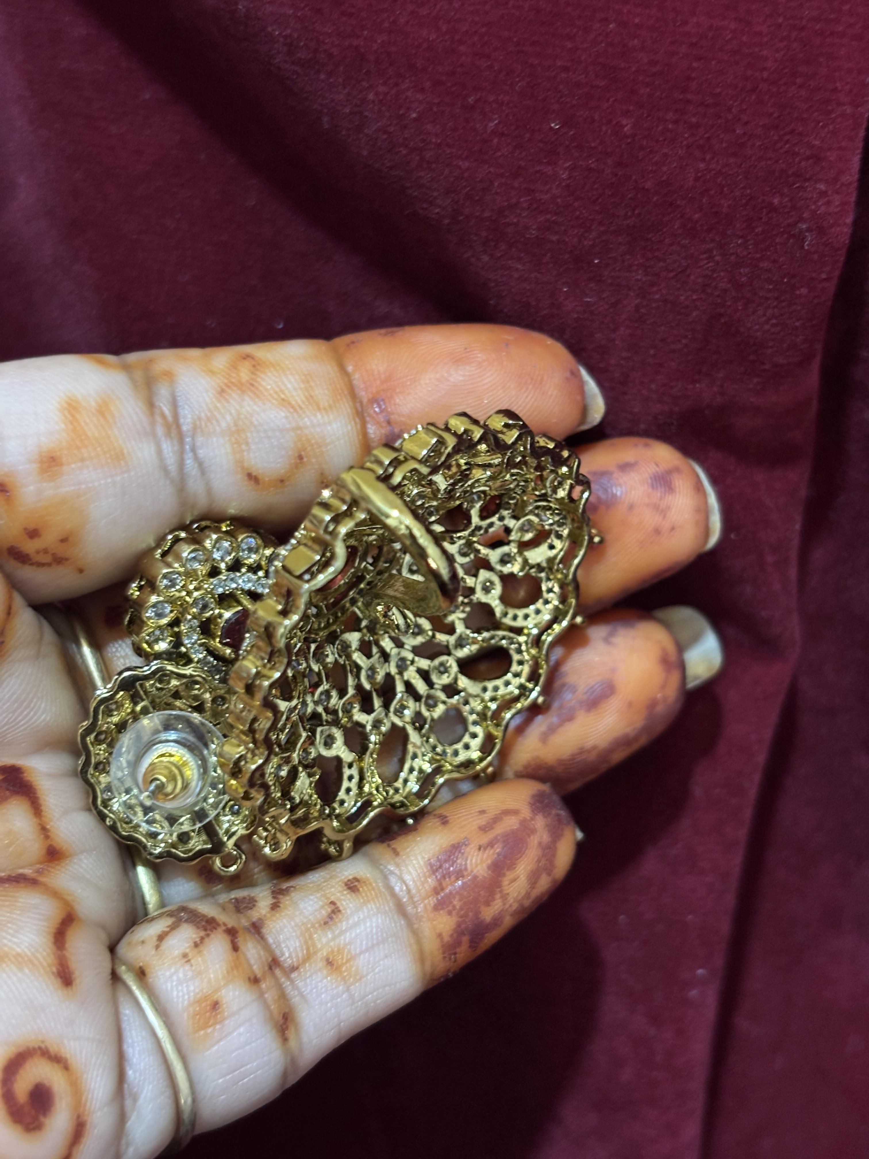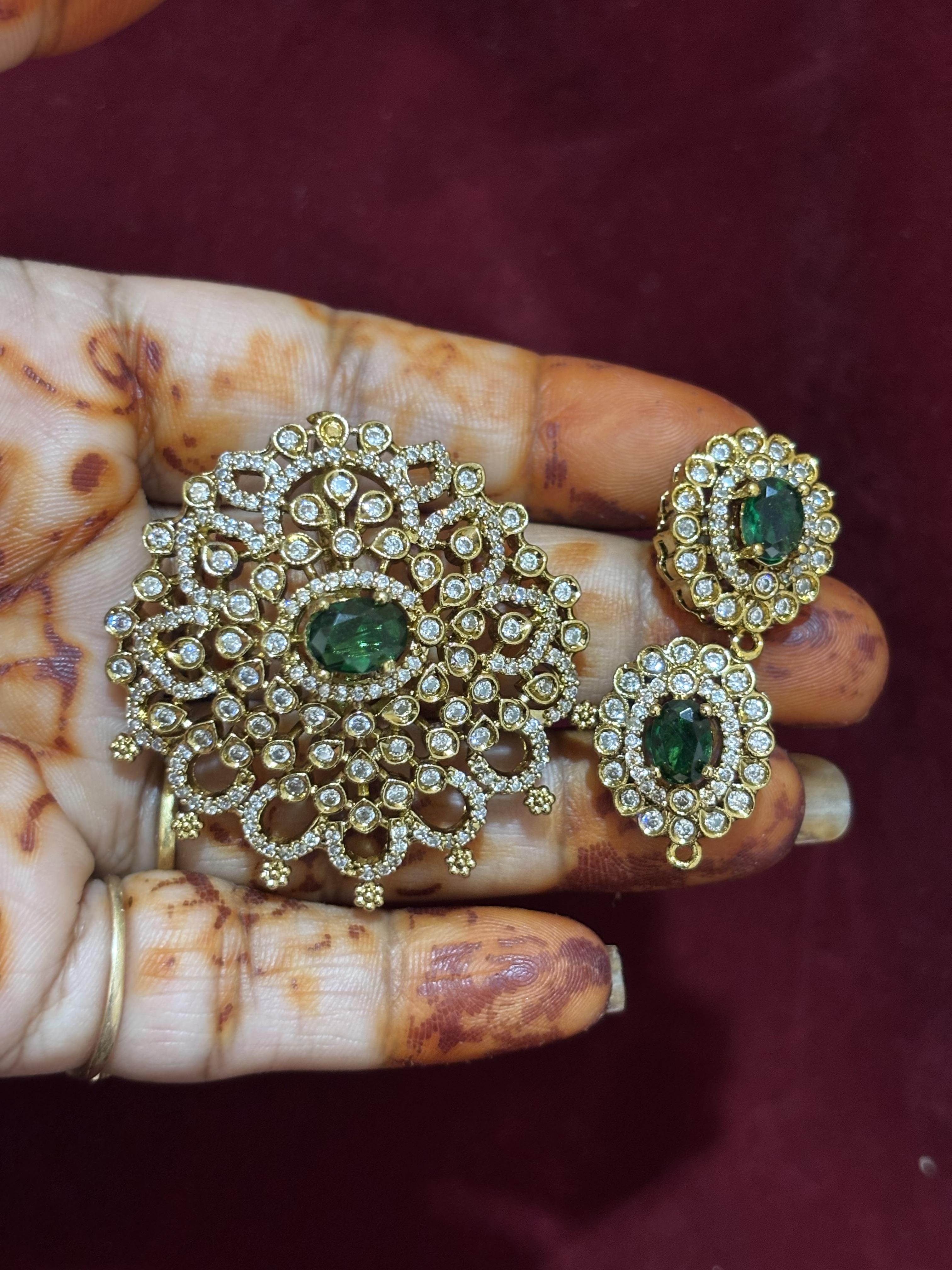 Victorian Mehandi finish Pendant With Stud Earrings (Colours Available), By Default Green Colour will be picked , please select colours